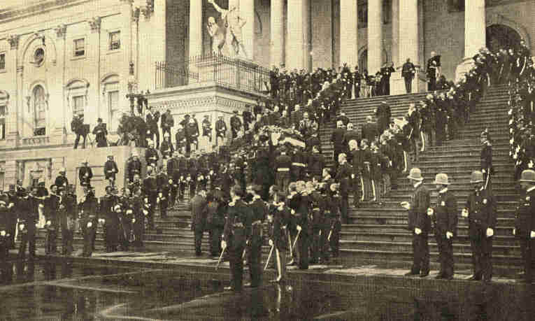 Ascending the Capitol steps at Washington, D, C., where the casket lay in state in the Rotunda.