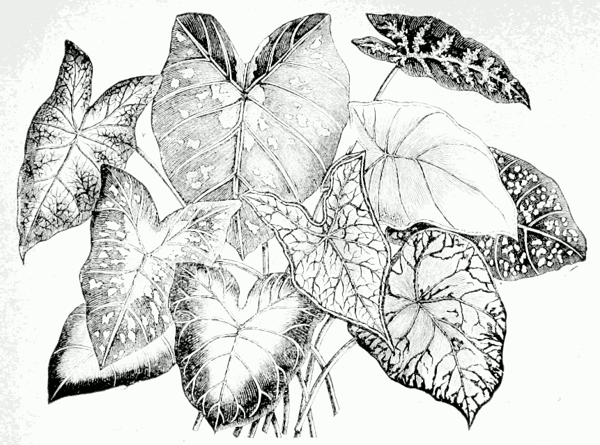 Aus der großen Familie der Araceen, welche hauptsächlich in den Tropen heimisch ist, sind einige Arten sehr beliebte, weil äußerst widerstandsfähige Zimmerblattpflanzen. Wem ein heizbarer Glaskasten zur Verfügung steht, der findet ferner unter den Araceen die am schönsten gefärbten Blattpflanzen, die Caladien, die an Farbenpracht von keiner anderen Familie übertroffen werden.