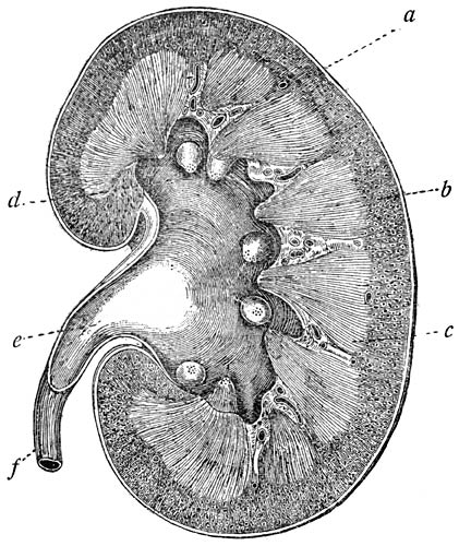 a. darmen. b. wervelkolom. c. buikwand. d. endeldarm. e. scheede. f. pisbuis. g. pisblaas.
