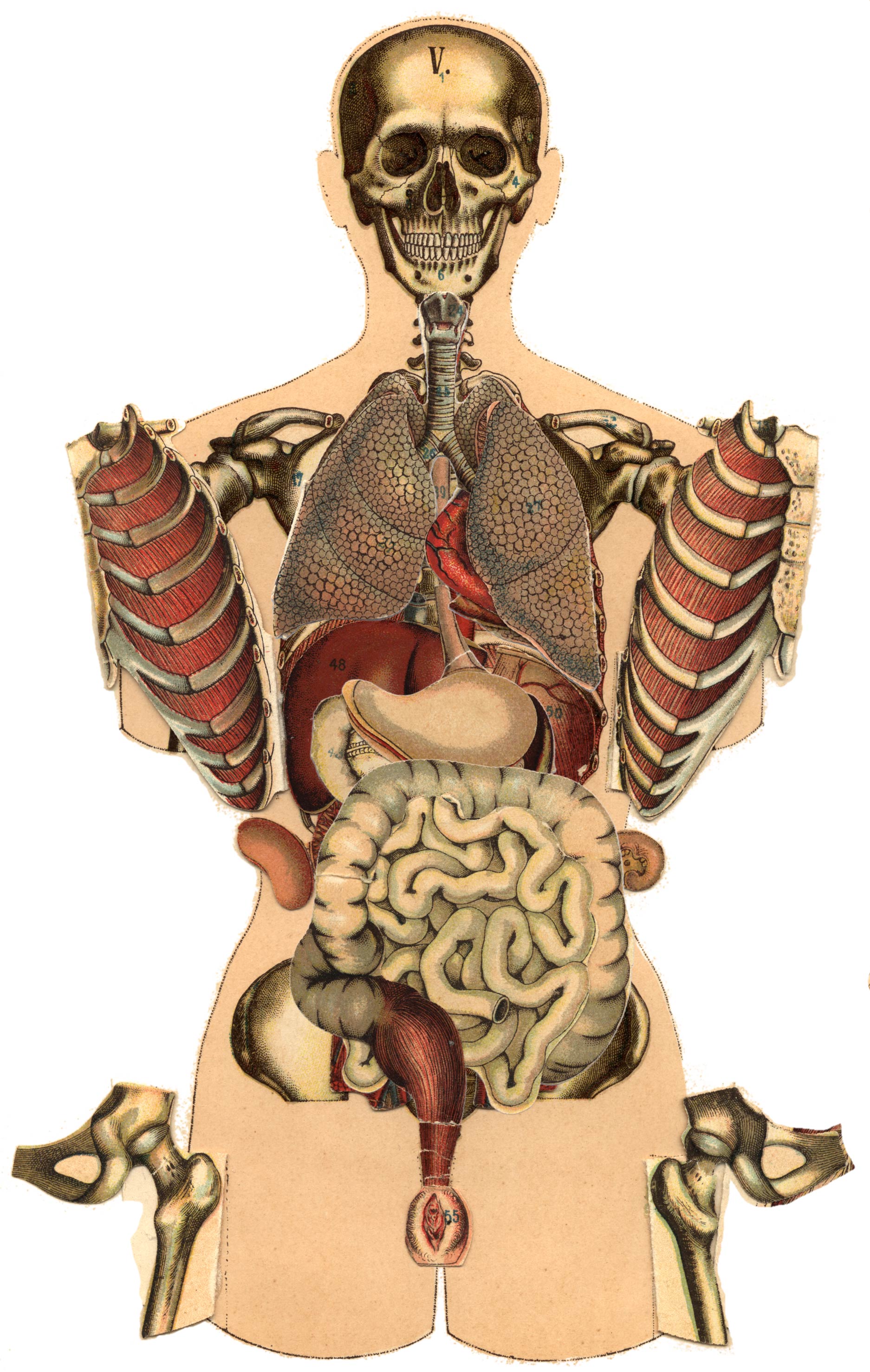 Dr. H. SCHMIDT, Het Menschelijk Lichaam, zijn bouw en zijne inwendige organen, aanschouwelijk voorgesteld door 5 beweegbare, gekleurde platen en met geïllustreerden, verklarenden tekst. Prijs ƒ 1.25.