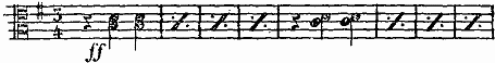 Le dialogue de Claude et de Clopin était dit pianissimo, en mesure à 6/8 d'un rythme entrecoupé. Vis-à-vis de ces vers de Claude: