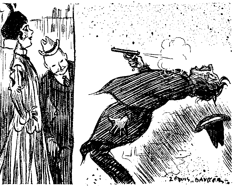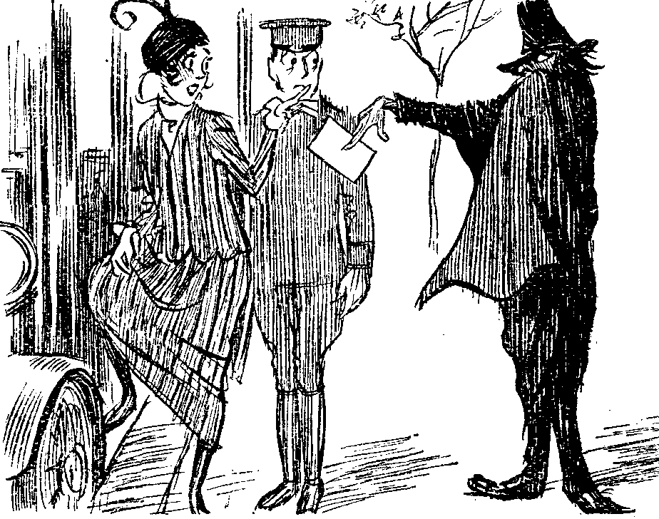 Things were so quiet that Jimmy was just thinking about taking his bloodhound on the spy trail, when a woman came along with a little hand-organ slung round her neck and a cage containing two small green parrots for telling your fortune.