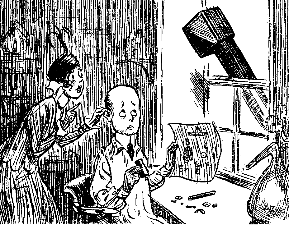"Only one; I never carry more than that in case I might get my pockets picked. It's a bit thick," I continued, "we economise and deny ourselves in all kinds of ways and then that spend-thrift comes—or, rather, sends his wife—and borrows all our hard-earned savings."