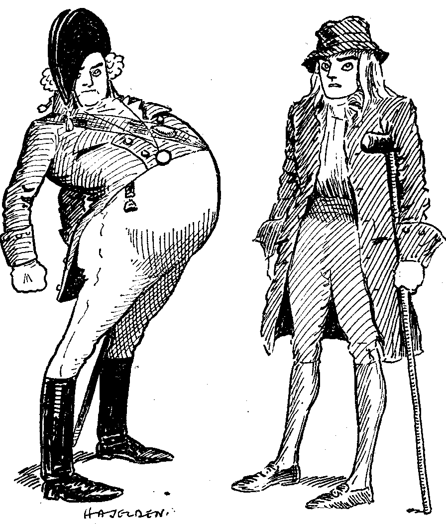 At the peace of 1814 he returns thin and lame to find that the lady of his choice has long married the man of hers (and why not?), and that the two, with their children, are installed in his house; Dillworthy no longer Deputy but reigning Mayor. Nobody recognises the famous Toogood, which is entirely "Q's" fault, not theirs; and nobody, except a pretty maid who is to marry his nephew (his own money has made the match possible), seems to worry overmuch (absit omen!) about returned prisoners of war. He reveals himself to nobody but his villain brother William (Mr. Ayrton). That fatuous revenue officer, Lomax (Mr. Malleson), has written a fulsomely flattering life of him at which his gorge rises. Everybody, apart from opening a hospital in his memory (in a bed of which he eventually finds himself), seems to be going about his or her business much as usual (yet what else could they do?). He extracts a character of himself from his faithful old servant and finds it not so flattering as he would have liked. Seems, in fact, determined to have his grievance. Well, then, he will buy a dog. And he will take the road with his pal the comic sailor and shake the dust of fickle Troy from off his feet.