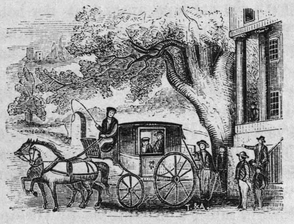 [2] A Hansom cab is made like an old-fashioned chaise, only that it is set very low, so that it is extremely easy to step in and out of it, and the seat of the driver is high up behind. The driver drives over the top of the chaise! Thus the view for the passengers riding inside is wholly unobstructed, and this makes the Hansom cab a very convenient and pleasant vehicle for two persons to ride in, through the streets of a new and strange town.