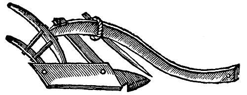 The tenth part of a compleate Plough, is the share; which is fixed to the Plough head, and is that which cutteth and turneth vp the earth: if it be for a mixt earth then it is made without a wing, or with a very small one, but if it be for a déepe, or stiffe clay, then it is made with a large wing, or an outward point, like the figure following.