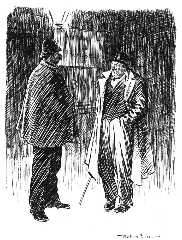 Injured Party (who has just been turned out of a public-house, explaining his little grievance). "Now, what d'you shay, conshable? d'you think I'm intoxicated?"