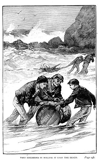 An object in the surf now caught their sight, some way ahead, at a spot free from rocks. Hastening forward they found that it was a cask, and after several efforts, at the risk of being carried off by the sea, they succeeded in rolling it upon the beach.