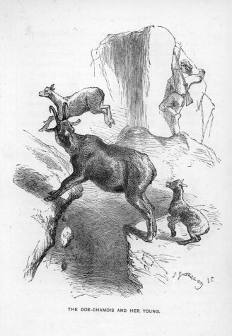 On the crumbling walls of the romantic ruins of Caernarvon Castle, some years ago, two agile goats were seen,—now leaping over a rugged gap, now climbing some lofty pinnacle, now browsing on the herbage overhanging the perilous paths. Presently they approached each other from opposite ends of one of the narrow intersecting walls. When they met, finding that there was no room to pass, they surveyed each other face to face for some minutes in perfect stillness. Each had barely standing ground for his own feet. However, they tossed their heads with menacing looks, often making slight feints of butting or pushing forward; but they took care not to come into actual contact, knowing well that the slightest force might precipitate one or both from their perilous position. Neither could they attempt to walk backward or turn round on so narrow a spot. Thus they again stood quite still for above an hour, occasionally uttering low sounds, but neither of them moving.