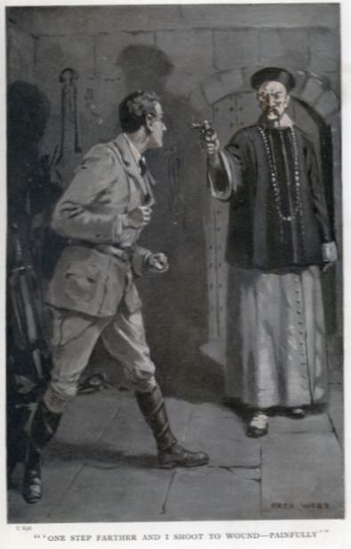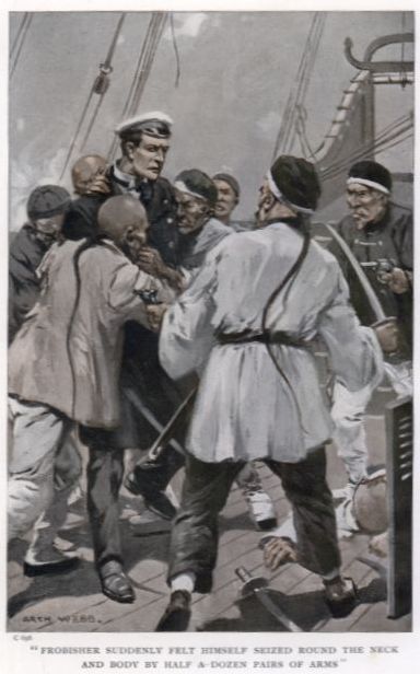Himself armed, Frobisher desperately strove to break through and get to the front, so that he might in some degree stem the rush until his men could recover their wits; but it could not be done. The Chinese were being driven backward and jammed together by sheer weight of numbers, until they could move neither hand nor foot, and were being slaughtered like sheep. The last thing that Frobisher was conscious of was that he was shouting frenziedly for Drake; then something flashed before his eyes, a thousand sparks danced through his brain, and he knew no more.