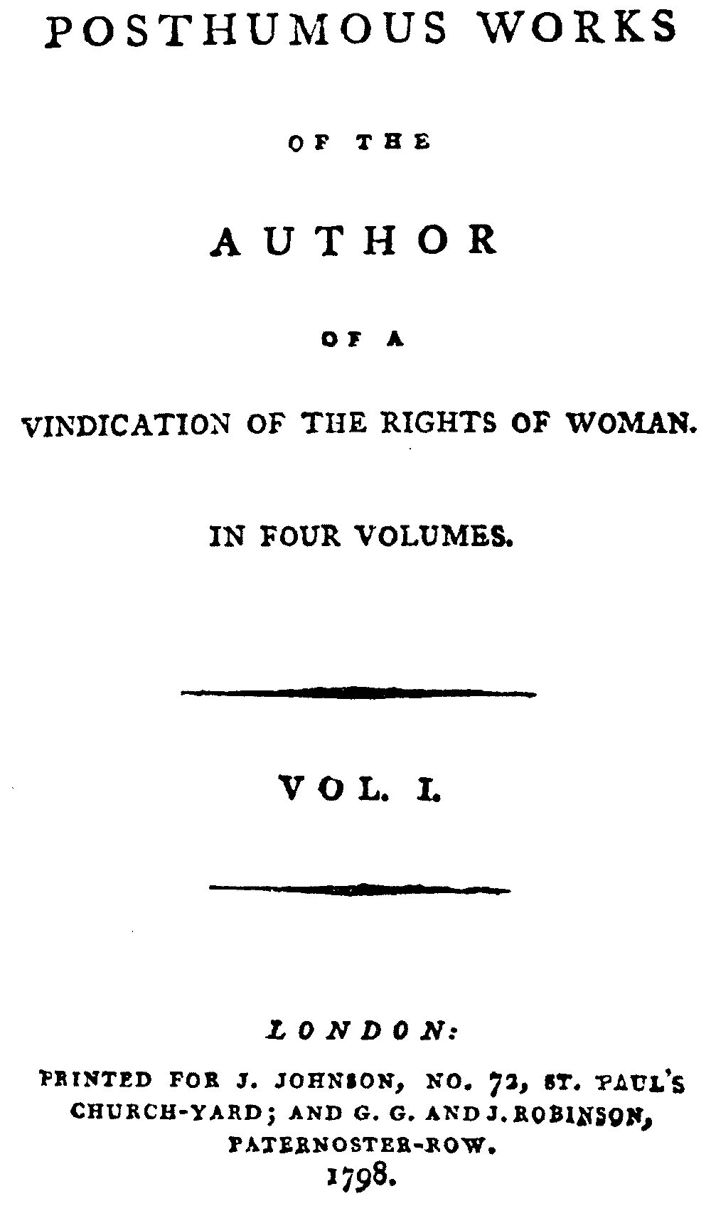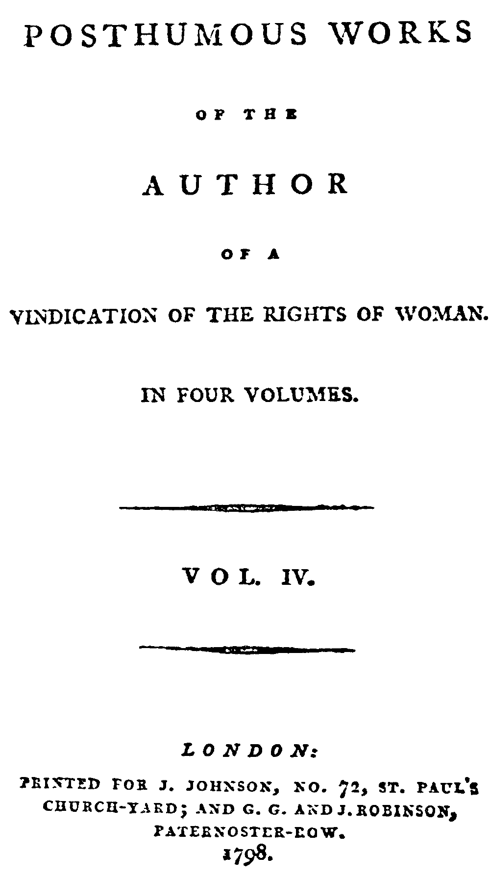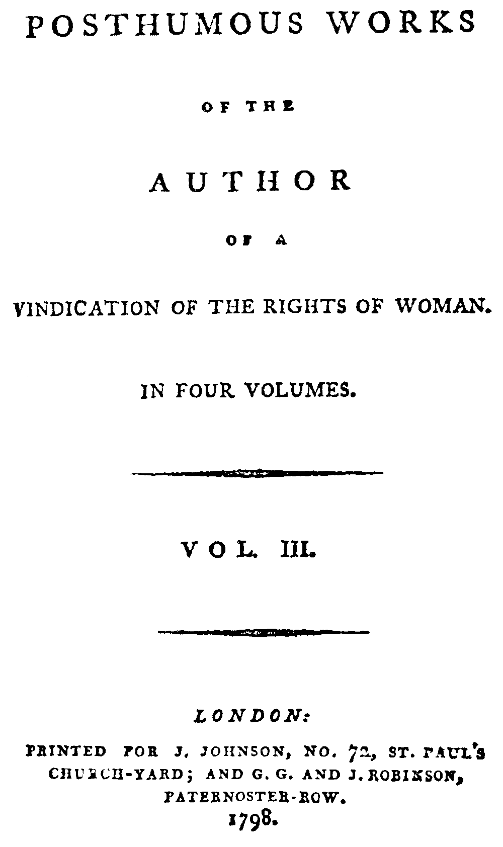 Title: Posthumous Works of the Author of A Vindication of the Rights of Woman