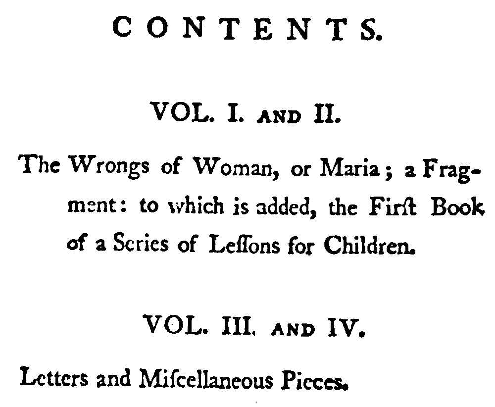 The Wrongs of Woman, or Maria; a Fragment: to which is added, the First Book of a Series of Lessons for Children.
