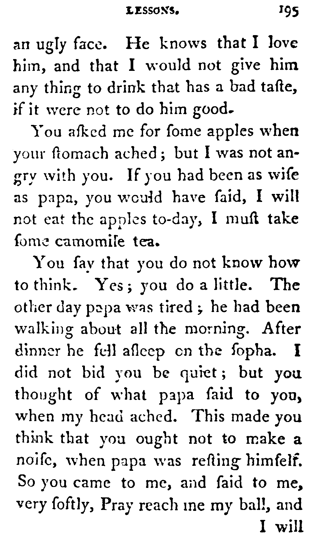 He was now convinced that the orphan was not very unfortunate in having loſt ſuch a mother. The parent that inſpires fond affection without reſpect, is ſeldom an uſeful one; and they only are reſpectable, who conſider right and wrong abſtracted from local forms and accidental modifications.