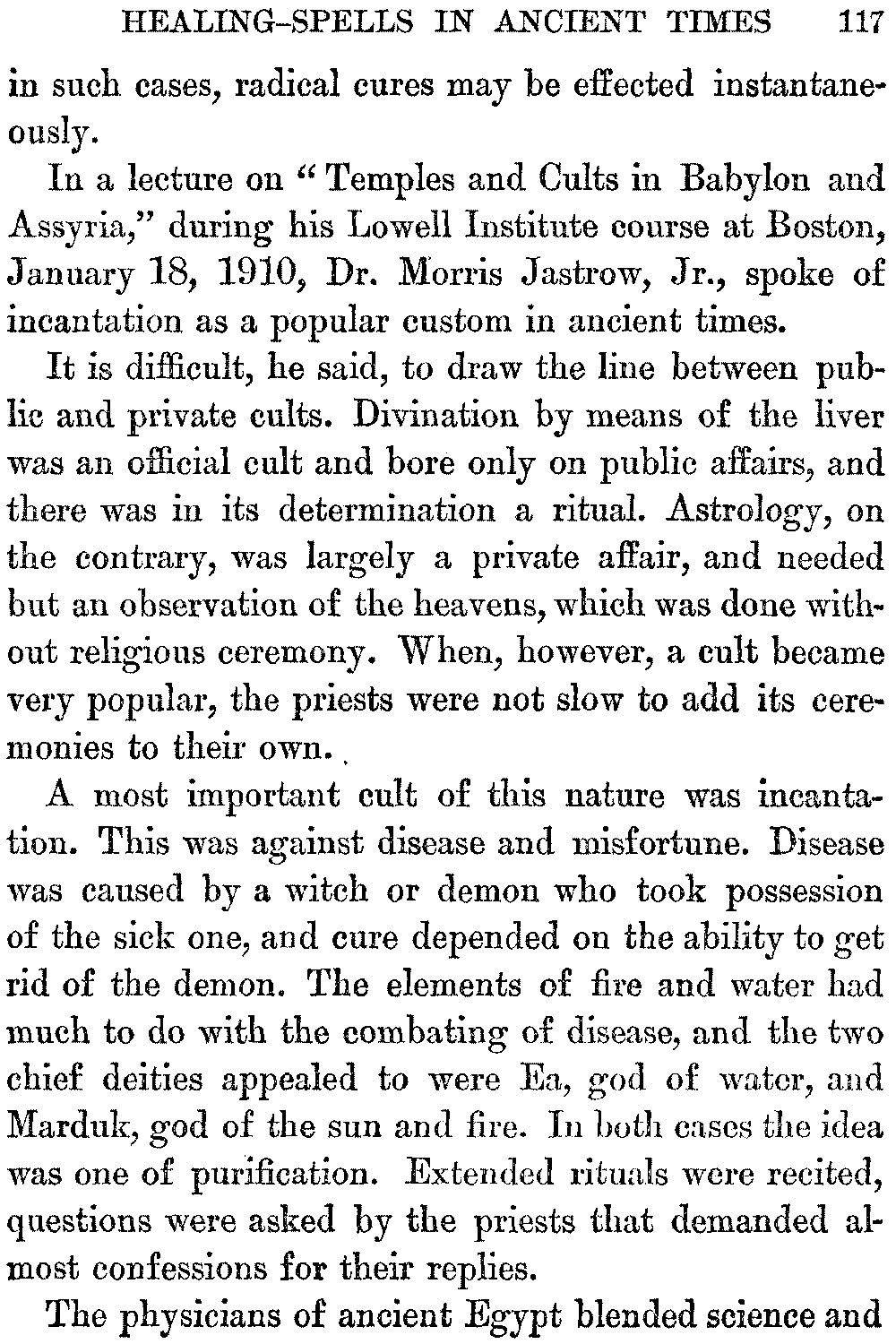 For a goodly proportion of these magical therapeutic formulas had evidently a definite purpose, namely, the expulsion of the demons, who were believed to be the originators of disease.