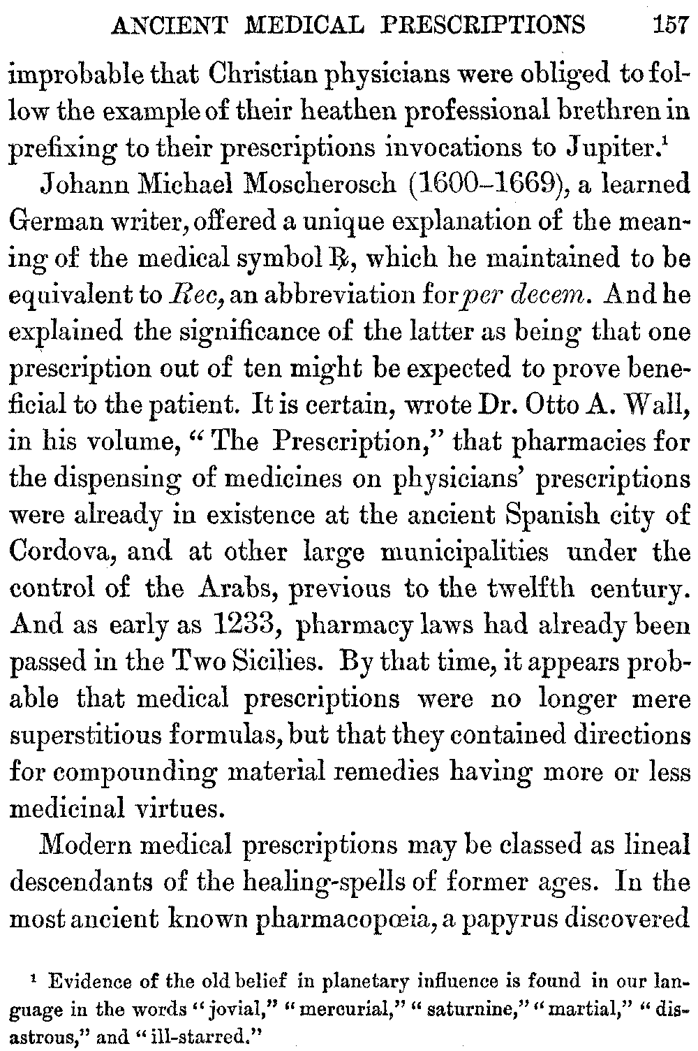 The physician of the fifteenth century was wont to write his prescription in mysterious characters, and bind it upon the affected portion of the patient's body.[9:1]