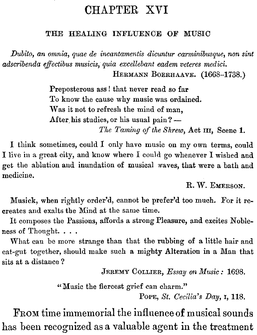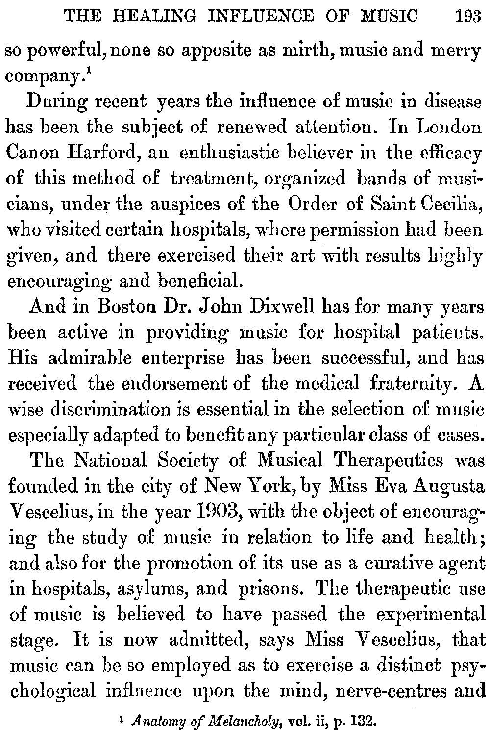 | XVII. | The Healing Influence of Music (continued) | 185 |