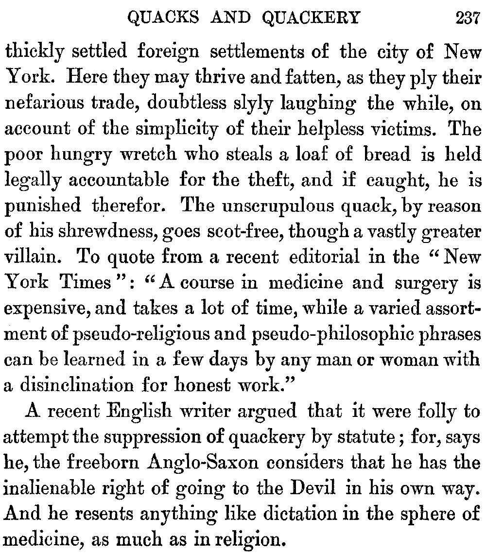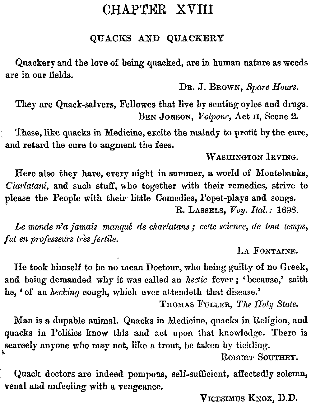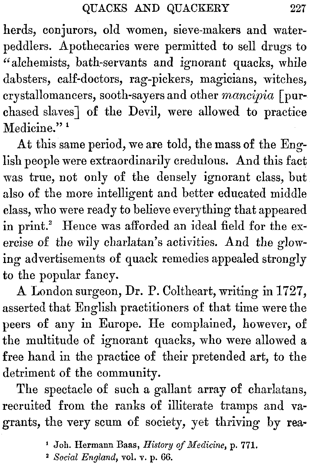 | XIX. | Quacks and Quackery (continued) | 223 |