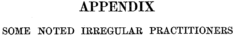 | Appendix: Some Noted Irregular Practitioners: | ||