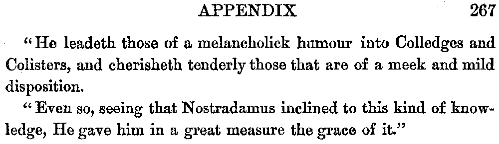 "Even so, seeing that Nostradamus inclined to this kind of knowledge, He gave him in a great measure the grace of it."
