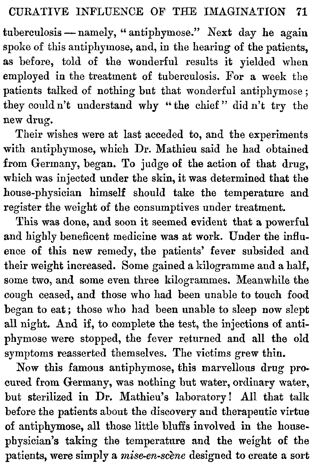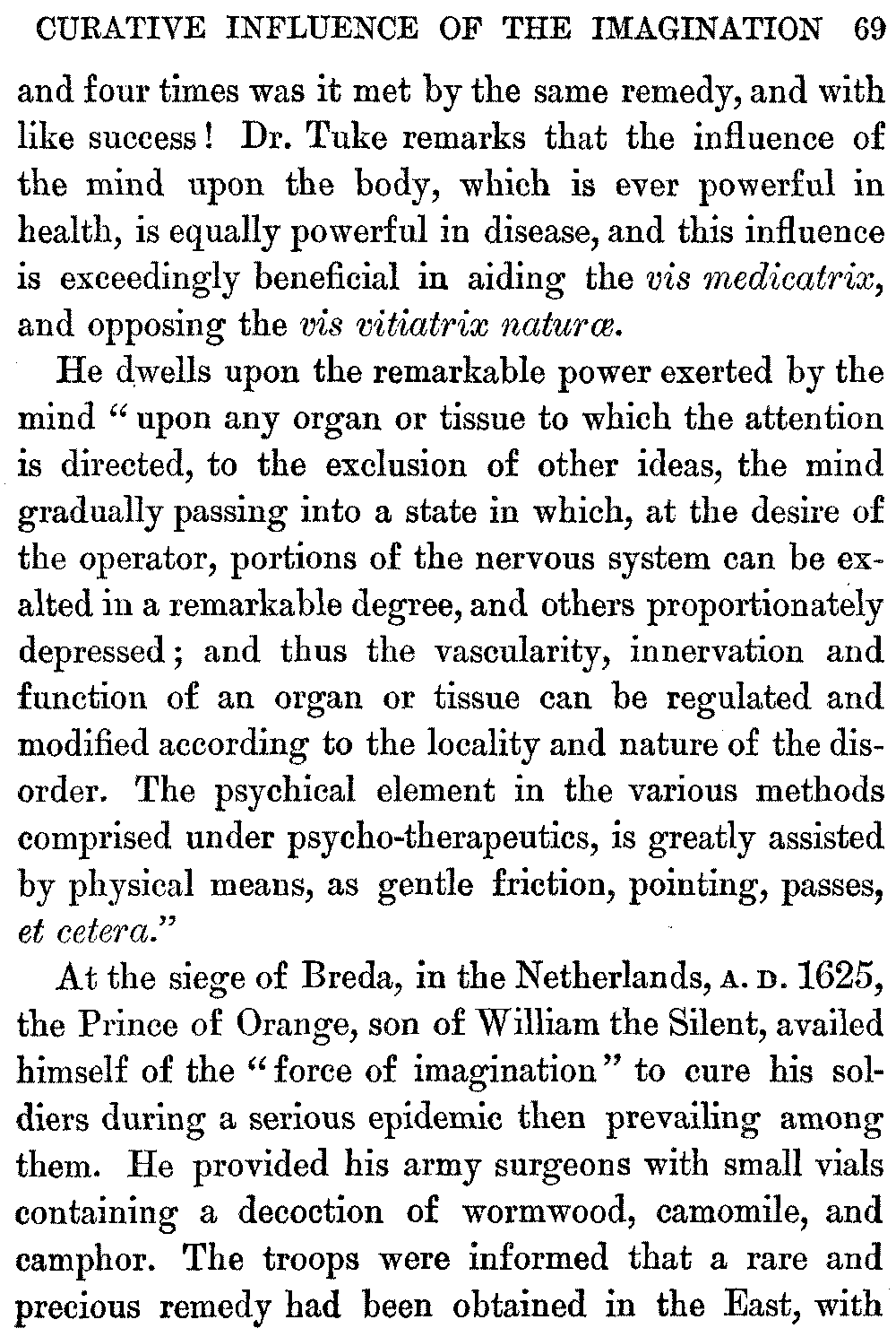 They have observed but little, who have not remarked how much Imagination contributes to give success to the curative power of a medicine.