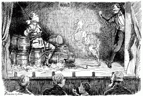 "The officer in command, Lieut. Berg, was exceedingly pleasant, and did all in his power to put the passengers at their ease and make them feel comfortable.... He had a large bomb placed in the engine-room, and another on the bridge, which could be exploded easily by electricity."—Daily News.