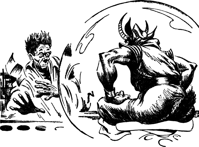 "For a time, I practiced the strange syllables. Many times did I speak them aloud, then I pressed the bosses on the table, as shown by one of the books. There was a light. Then, the great ball glowed with color, to show me the first demon.