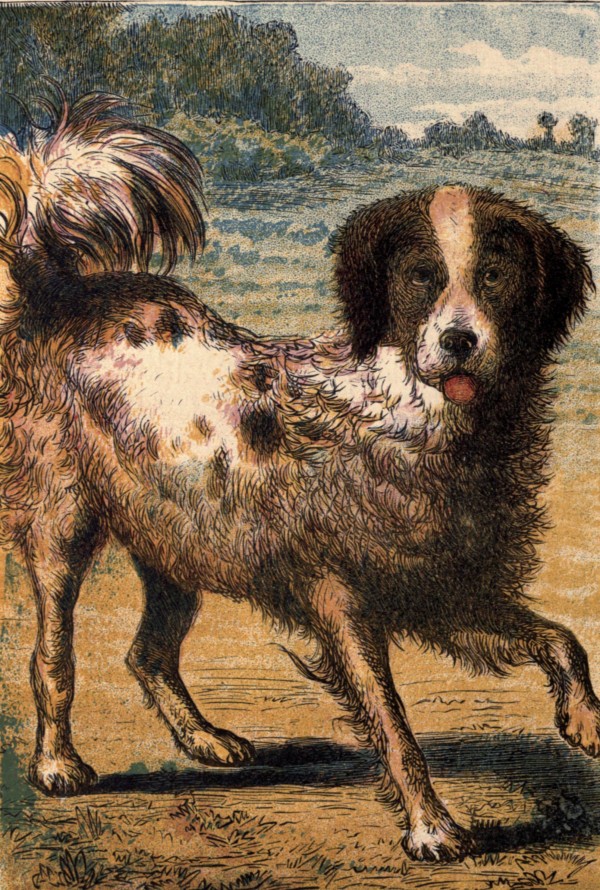 Car-lo is Har-ry's dog, and a ve-ry good dog he is. If you were to throw a stone twen-ty times in-to the foam-ing sea, Car-lo would plunge in, with-out [5][4]a-ny fear, and bring the ve-ry same stone out to you. And if Har-ry loses his ball a-mong the long grass, Car-lo brings it in a mi-nute. And he can do bet-ter things than these, for one day in win-ter, when the ri-ver was fro-zen, and Har-ry was ska-ting on it ve-ry nice-ly, he came to a place where the ice was thin, for a hole had been bro-ken the day before, and there had not been time for it to get hard a-gain. Poor Har-ry broke through the ice and sank down in-to the wa-ter; he would have been drown-ed, but Car-lo di-ved down, and brought him out safe. No won-der Car-lo is a pet.