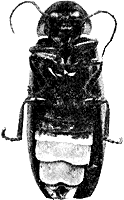Catch one of the fireflies in your hat and examine it carefully. How large[77] is it? Describe briefly its size, shape and color. Are its wing covers hard like other beetles? Where is the light produced? What color is the light? Is it bright? Hold the firefly on the opposite side of a sheet of paper and see if the light will show through. Try the same with your hat, coat sleeve and other objects. This light is extremely penetrating and unlike the light of a lamp is produced with the generation of very little heat. Will it continue to flash while you hold it? Are the segments from which the light comes the same color as the other segments of the body? Crush the tip of[78] the body between your thumb and finger and see if the light continues to appear. How long does it last? Collect a number of the fireflies and put them in a bottle and see if the light is strong enough to enable you to read.