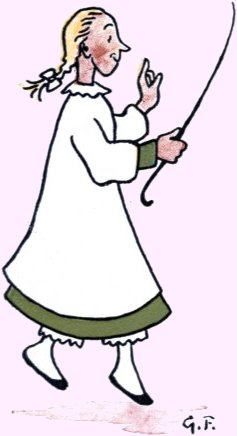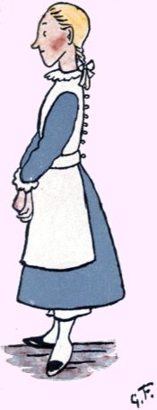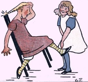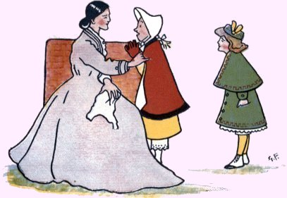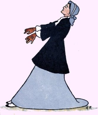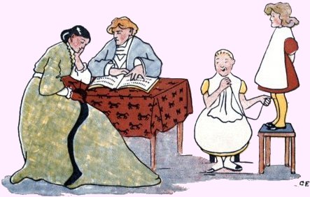 That model Miss, Jemima Jane Was very good, and very plain; Her parents noticed with delight How neat she was, and how polite. Sometimes her young companions came And begged she’d join them in a game. But it was never any use; She’d make some civil, quiet excuse, And, “Dear Mama,” she’d whisp’ring say, “I love plain sewing more than play; I hope you’ll always think of me As your own gentle, busy Bee!” Jane rose at five. “What for?” you ask; And I reply, “To con her task.” She breakfasted on milk and bread, Nor ever asked for aught instead; “I like it best, because,” said she, “’Tis wholesome for a child like me.” She used to think it quite a treat, To put her bed and chamber neat; But she enjoyed—oh, better far! Saying her tasks to her Mama. 10She took the air when these were done, But she would never romp and run; Prim and sedate she walked about, Her back quite straight, her toes turned out: And all the people, seeing this, Exclaimed, “Oh, what a model Miss!” |