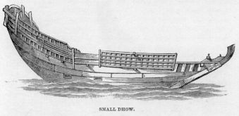 Many English nautical terms at present in use are clearly of Phoenician origin. Davit, for instance, is evidently derived from the Arabic word Davit, a crooked piece of wood, similar in shape to that by which the boats of a vessel are hoisted out of the water and hung up at her sides. The word Caboose was the name given by the Phoenicians to the temple dedicated to the god of fire, whom they worshipped, built on the decks of their vessels; when a purer faith was introduced, it being found convenient to cook dinners in the no longer sacred Caboose, the name being retained, Blackie the cook took the place of the officiating priest. Caboose is at the present day the name of the kitchen-house on the deck of a merchant-vessel. Many other terms even now used by seafaring people are derived directly or indirectly from the same far-distant origin, as are several of the customs observed at the present day. I may mention some of them by-and-by.