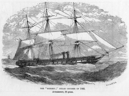 Some years passed before it occurred to the Admiralty that steamers could be of any use to the Navy, and it was not till 1823 that they purchased the Monkey tug, which, not withstanding its undignified name and humble employment, had the honour of being the first steam-vessel belonging to the Royal Navy. She was a vessel of about 212 tons, and 80 horse-power, and did good service in her day. Both Admiralty and naval officers held steamers,—“smoke-jacks,” or “tea-kettles,” they were generally called—in great contempt, supposing that their only possible use would be as despatch-boats, or as tugs. It was reasoned that paddles would be so readily disabled in action, that it would be useless to fit them to fighting ships. However, after a year or so, several steam-sloops and frigates were built which took some part in the Syrian and Chinese wars, as also in operations in the Parana. In none of these wars, however, were they subjected to any severe test of their liability to damage under fire.