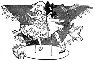 They were both very prettily dressed. The little lady Marionette wore a beautiful white silk dress brocaded with pink roses, whilst her partner had on a blue velvet coat, knee breeches, white silk stockings, and diamond shoe buckles. Their clothes were really very grand!