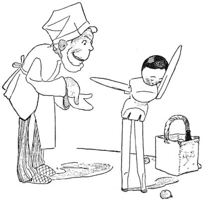 It so happened one evening that she wandered in after the shutters were put up, and the place was deserted. She paused before the14 spot where she was accustomed to find her favorite doll, a little lady Marionette, who, when wound up, danced gayly in company with her partner, a very fine gentleman.