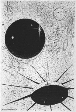 The long ship lifted steadily and majestically through the battering storm and the driving rain of dust and crystals. Out beyond the dense space that surrounds all stars, the long ship probed the ever-shifting currents in the four-dimensional universe. The long ship found a low-density flaw, where space could hardly be said to exist at all. The long ship, described mathematically, was half as long as the continuum—the length being inversely proportional and related only to mass. Time was but a moth's wing between twin cliffs of eternity.