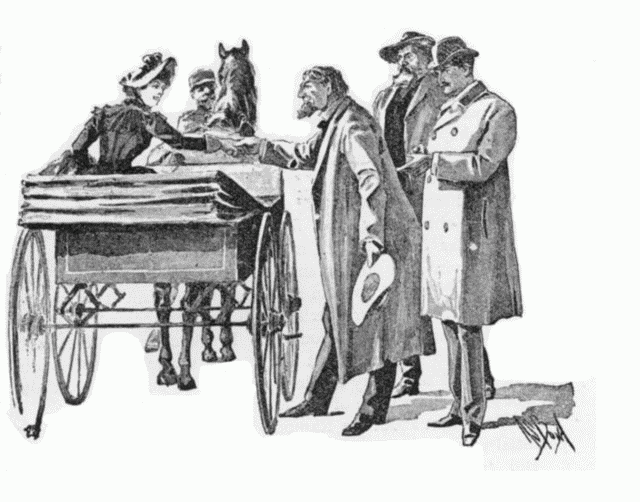 “Well, Miss Mullins, I’ve got a question or two to ask ye. I ask it straight out afore this crowd. It’s in my rights to take ye aside and ask it—but that aint my style; I’m no detective. I needn’t ask it at all, but act as ef I knowed the answer, or I might leave it to be asked by others. Ye needn’t answer it ef ye don’t like; ye’ve got a friend over ther—Judge Thompson—who is a friend to ye, right or wrong, jest as any other man here is—as though ye’d packed your own jury. Well, the simple question I’ve got to ask ye is this—Did you signal to anybody from the coach when we passed Galloper’s an hour ago?”