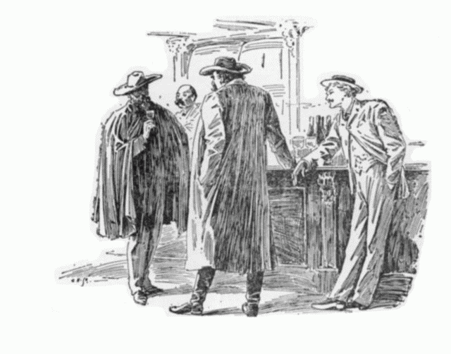 Bill slowly drew off his other glove. “I’ve been riskin’ my everlastin’ life on this d——d line three times a week,” he said with mock humility, “and I’m allus thankful for small mercies.[Pg 6] But”, he added grimly, when it comes down to being passed free by some pal of a hoss thief and thet called a speshal Providence, I aint in it! No, sir, I aint in it!”