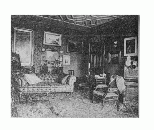 Personally speaking, I consider the possession of the artistic temperament a distinct curse to those unfortunate folk who have to live with the owner of this fantastic demon; while if the possessor knows how to deal with his old Man of the Sea he has a most powerful engine at his command: for once let the world at large know that the “artistic temperament” has entered into him, his strangest freaks become more than put-up-able with, and the brighter he is in company, and the more irritable and offensive he is at home, the more law is given him, and the less work, and, may I add, decency, is expected of him, until he appears to agree with his compeers or followers, and begins to be as eccentric as he likes. Commencing with long hair touching his shoulders, and with an absence of the use of Someone’s soap, he passes on through mystic moonlight glances to a still more artistic appreciation of the charms of Nature at her simplest, until Mrs. Grundy looks askance, and duchesses and other leaders of Society squabble over him, and try one against the other for the honour and pleasure of his society. So far, then, the artistic temperament is for its possessor a fine thing, for it cannot put up with indifferent fare and lodging: it can only prove its existence by the manner in which it annexes all that is richest, most beautiful, and, to use a byegone slang word, most Precious. For it is reserved the luxurious Chesterfield or Divan, heaped with rainbow-like cushions, and placed in the most becoming light, until the quick, unhappy day dawns when another “artistic temperament” comes to the fore, and the first retires perforce, if not a better, certainly a sadder, man, for all that has been happening unto him. Now comes the time when one sees the slow-witted creature sinking[Pg 104] gradually into the mere haunter of the Gaiety bar: when the sacred lamp burns brightly, and causes him to recollect, sadly indeed, the days that are no more. Or we find the man who has learned his bitter lesson, and recognising that he still exists—albeit the beast is dead—turns to the work he was meant to do, and does that nobly, though the mad and beautiful days of his youth have done, and all that caused life to be lovely has faded slowly into the ewigkeit.