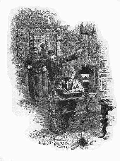 In those days I lived in a flat, my modest establishment consisting of an old female housekeeper and John. For the most part my two domestics were good friends, but there were periods of estrangement during which they were not on speaking terms; and then they sat on opposite sides of the kitchen table, and communicated with each other exclusively by written notes of an excessively formal character, passed across the table. This stiffness of etiquette had its amusing side, but was occasionally embarrassing, since neither was uniformly intelligible with the pen. The result was that sometimes I got no dinner at all, and at other times, when I was dining alone, the board groaned with the profusion, and when I had company there would not be enough to go round; these awkwardnesses arising from the absence of a good understanding between my two domestics. I could not part with the old female servant, and I began rather to tire of John, whose head had become considerably swollen because of the notice which had been taken of him. It was all very well to be in a position to gratify ladies who were giving dinner parties, and who wrote me little notes asking for the loan for a few hours of John, to make that wonderful prawn curry of which he had the sole recipe. But John used to return from that culinary operation very late, and with[Pg 97] indications that his beverage during his exertions had not been wholly confined to water. To my knowledge he had a wife in Goa, yet I feared he had his flirtations here in London. Once I charged him with inconstancy to the lady in Goa, but he repudiated the aspersion with the quaint denial: “No, master, many ladies are loving me, but I don’t love no ladies!”