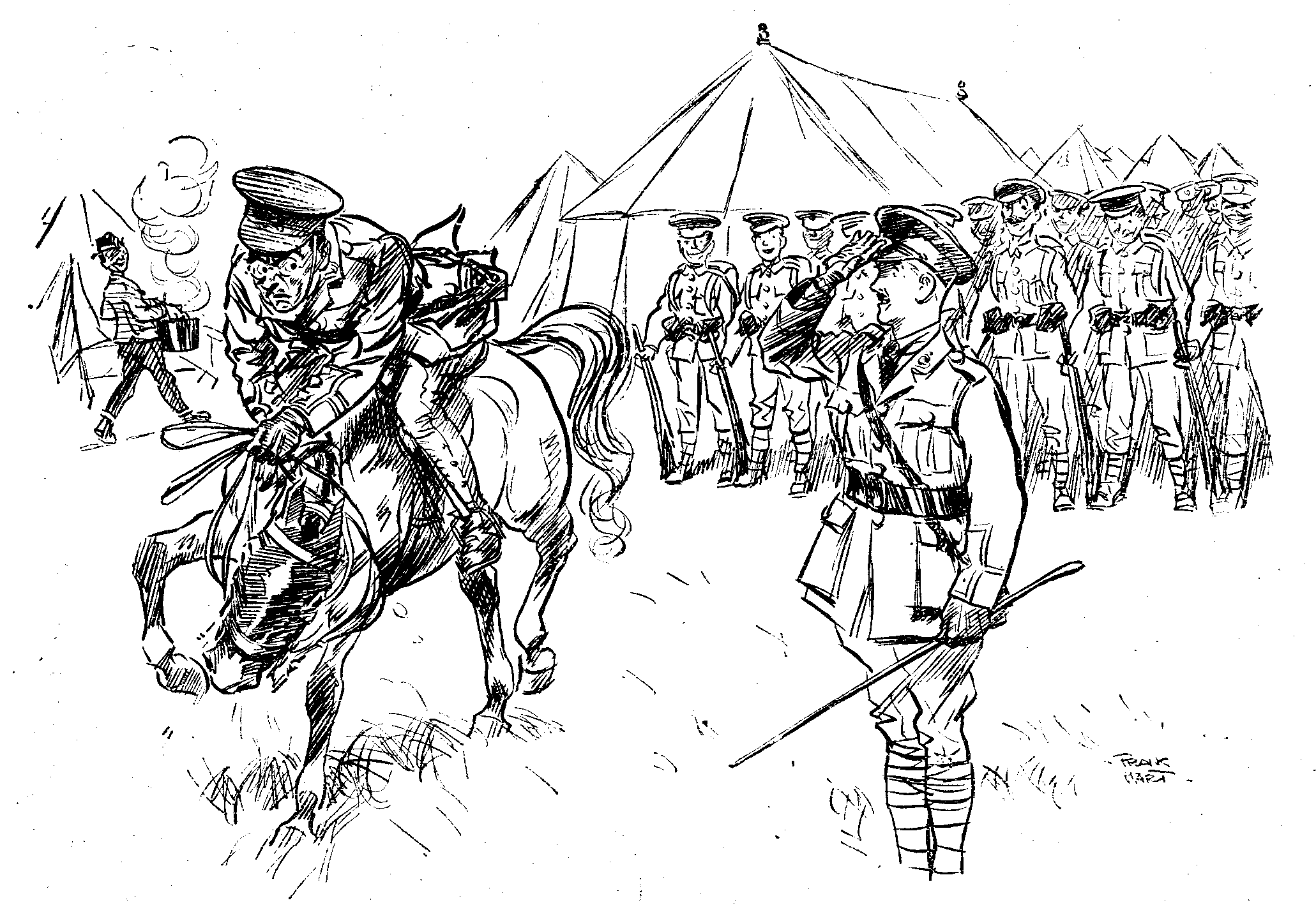 After this my men did so extraordinarily well that I became a marked man. I was, in fact, invited to step over to France and to give some practical demonstrations in the art of making war. To pack a few articles into a bag and to parade my men was with me the work of a moment. Before starting it was, however, proper to address a pre-battle speech to them. Silence was enjoined and I spoke, spoke simply and honestly as a great soldier should. "Form fours," said I, and paused dramatically. "Form two-deep," I continued, and my meaning was understood. "Form fours," I concluded ... and we were ready for the worst.