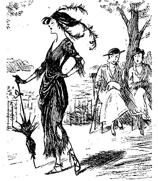 [Enter the leading lady. She just pushes the back-curtains apart and emerges on to the stage, dressed in any old thing (what a saving!). The Chorus continues ecstatically.]