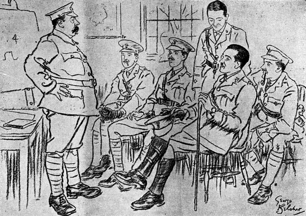 Never shall I forget.... Now I know there was something else, but there are such a lot of things that I am never going to forget about this War that I cannot be expected to remember them all. It was something about someone not shaving, and being in the rear rank while the front rank was being inspected, and in the front rank while the rear rank was being inspected. It was by such brilliance of strategy as this that I was able to do the Bosch out of that little dinner he meant to have in Paris. It was owing to the same, and to my being overheard to remark that I could run the blessed War by myself better than this, that I was given a pen and a piece of blotting-paper and told to carry on. After which, of course, the wretched Bosch never even got as far as Calais.