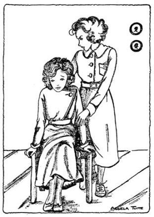 "Almost," came the muffled reply from the stiffly-starched little figure sitting on the floor struggling with a broken shoe-string. "Why, Peace, where are you going?"