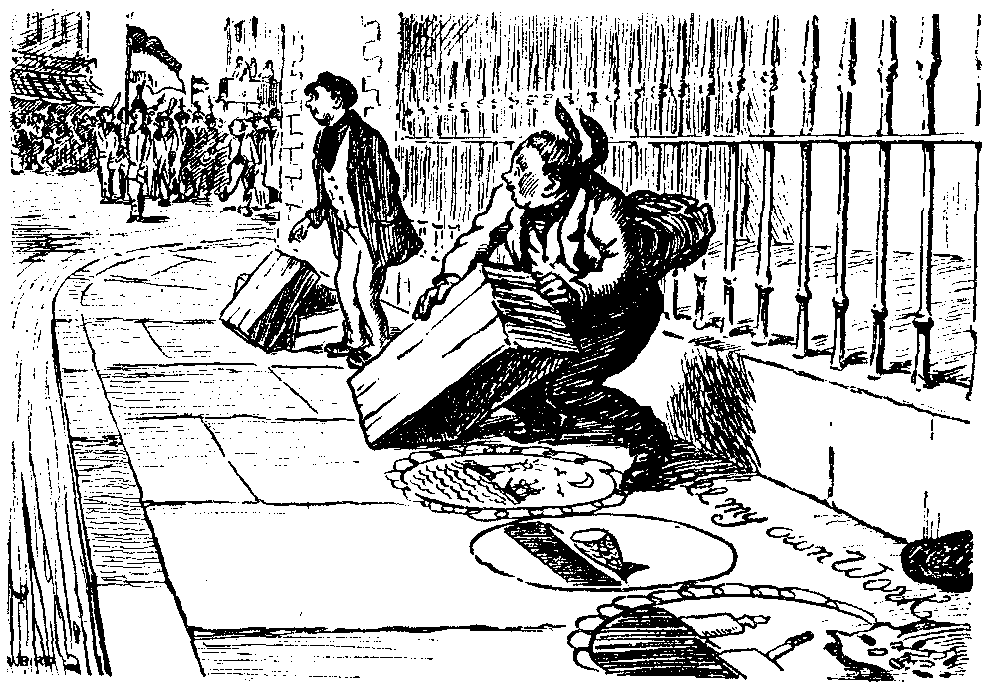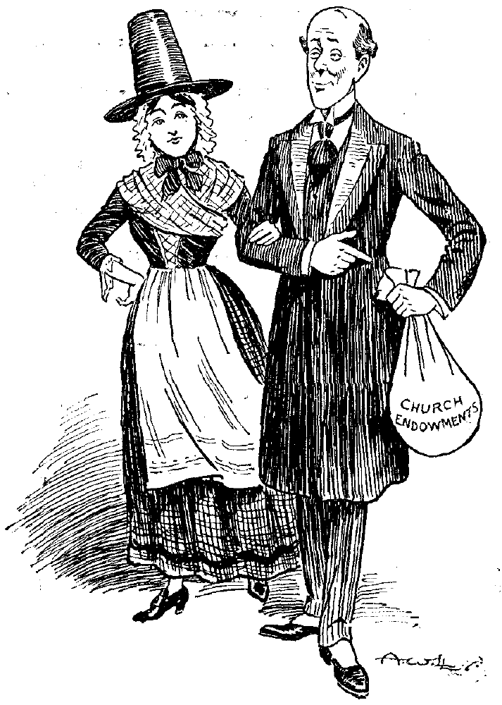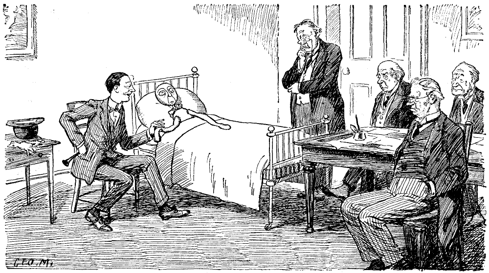 The next man to drop in was Pobson. He is a Grand Knight Imperial (or something similar) of the Primrose League, and makes speeches between the ventriloquist and the step-dancer at their meetings. He has signed the Covenant, and reads every column Mr. Garvin writes. In fact, I attribute it entirely to Mr. Garvin's effect on the nerves that his handicap has been increased from plus two to scratch.