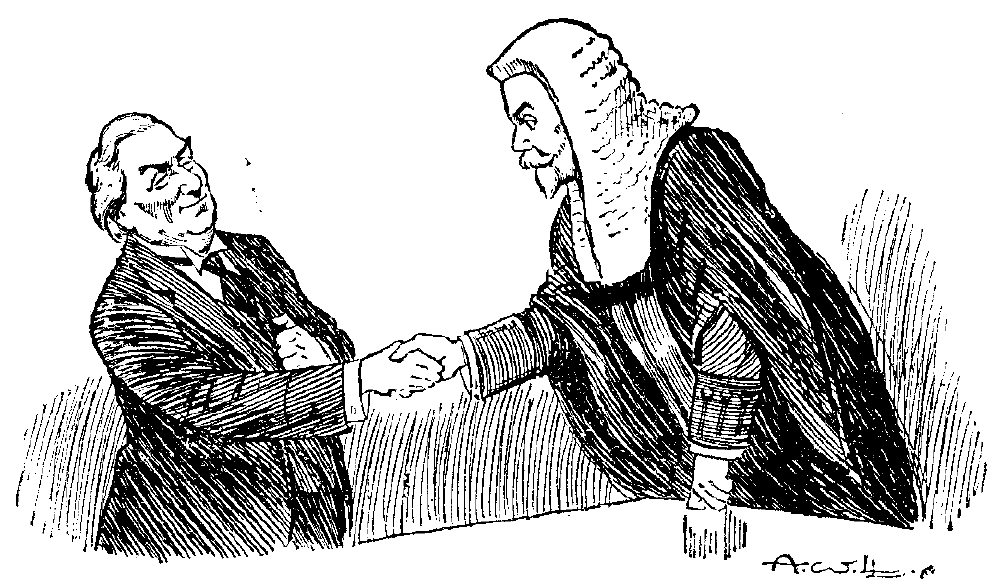 However, nobody goes to a production of Mr. Shaw's with the idea of seeing a play. We go to hear him discourse on just anything that occurs to him without prejudice in the matter of his mouthpiece. This time he was represented by a dustman; and for once Mr. Shaw consented to temper his wisdom to the limitations of its repository. His Alfred Doolittle (father of the flower-girl) threw off a little cheap satire on the morality of the middle-classes, yet admitted the drawbacks of unauthorised union (as practised by himself), since a man's wife is there to be kicked, whereas a mistress is apt to be more exigent of the amenities; you must adopt a more lover-like attitude if you want to retain her. He also argued brightly in defence of his proposal to sell his own daughter to any man for a fiver; let fall a platitude or two in praise of the lot of the undeserving poor; and (having come in for a fortune) found that charity had lost its blessedness—that the touch of nature which makes the whole world kin was only admirable when you did the "touching" yourself. Not bad for a dustman, but Mr. Shaw has done better.