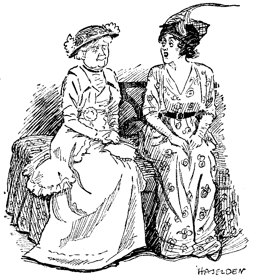 She. "Hush! Poor dear, she's just heard my other grannie is engaged and she's so afraid she may be left on the shelf."