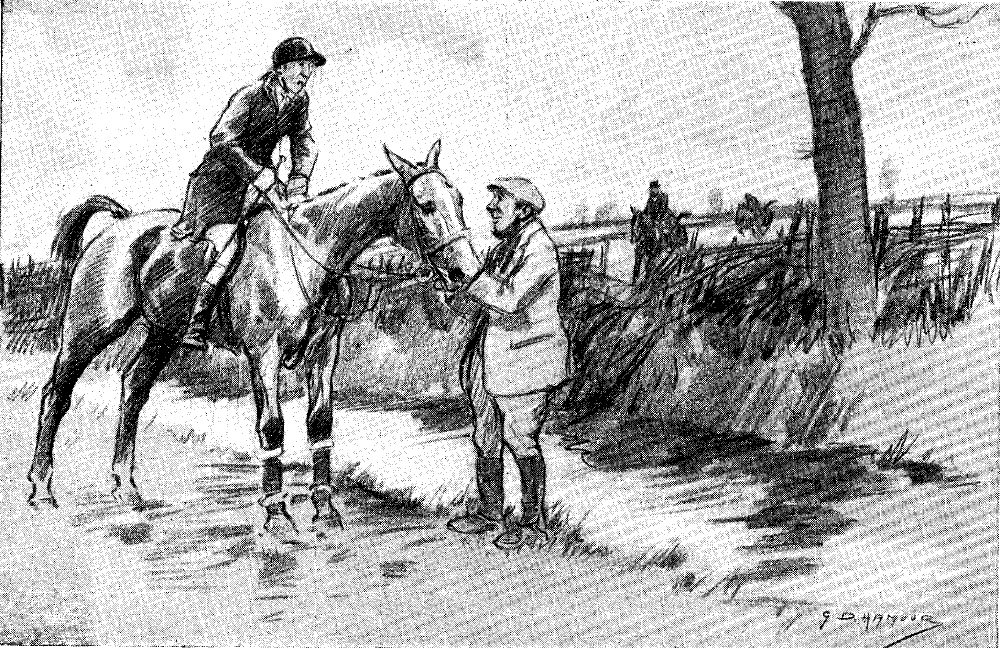 Good and encouraging Samaritan (helping sportsman to remount after immersion in the brook). "Next old bruck be heaps bigger'n this un, and he do have a turrible lot o' water in he just now."
