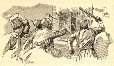 George did not answer at once, and Naoum waited[Pg 357] patiently for him to speak. The generosity of this man knew no bounds; his offer was princely, and George hardly knew what to say. He hated to refuse this thing, for Naoum's heart was evidently set upon it, and yet he could not accept. The peaceful life of a trader, or at least the peaceful life he imagined it to be, had no attraction for him, despite the wealth accruing to it, and yet how could he make this good man understand? Naoum was still awaiting his reply, and George felt that he must not delay in giving his answer; perhaps if he could gain time he might see his way to doing as his protector wished, although, at present, he did not see how. Stepping over to the good man, he wrung him by the hand.