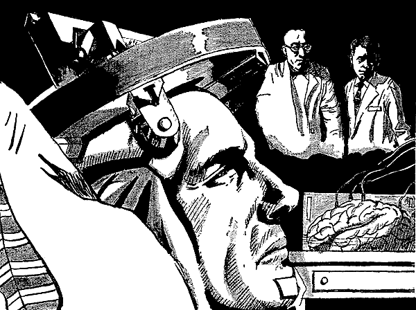 "Naturally, some big-shot's near the end of his rope and willing to gamble. But I decided it would be a forgotten little-shot, name of Edwin Scott. I already knew the surgeons from being a guinea pig on ICEG. Of course, when I sounded them out, they gave me a kindly brush-off: The matter was out of the their hands. However, I knew whose hands it was in. And I waited for my chance—a big job that needed somebody expendable. Then I'd make a deal, writing my own ticket because they'd figure I'd never collect. Did you hear about Operation Seed-corn?"