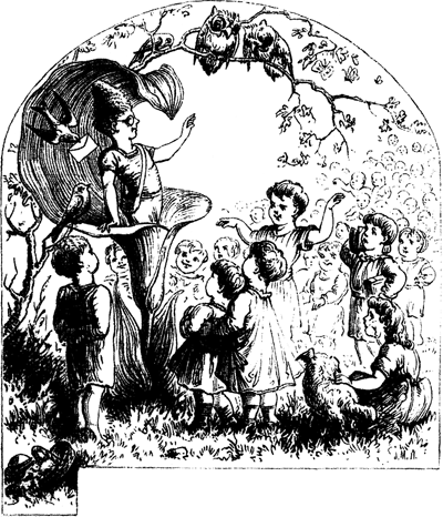 Accordingly, on Easter Sunday, after the church service, all the little ones of about the age of her own met together in a garden; and, when their kind hostess had talked to them a while, she led them into a small neighboring wood. There she told them to make nests of moss, and advised each to mark well his or her own. All then returned to the garden, where a feast of milk-soup with eggs and egg-cakes had been prepared. Afterward they went back to the wood, and found to their great joy in each nest five beautiful colored eggs, and on one of these a short rhyme was written.
