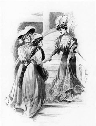 She was sweeping down the staircase to greet her hostess when she suddenly stopped aghast! From opposite directions—entirely unconscious of the other's approach—came Ethel Danielson and Elise Thayer. There was no avoiding the collision at the foot of the stairs and the three women were brought abruptly face to face.